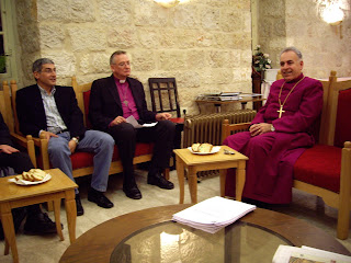 Picture (L-R): Mr Yusef Daher, Archbishop Phillip Aspinall and Bishop Suheil Dawani, at St George’s Cathedral, West Jerusalem.