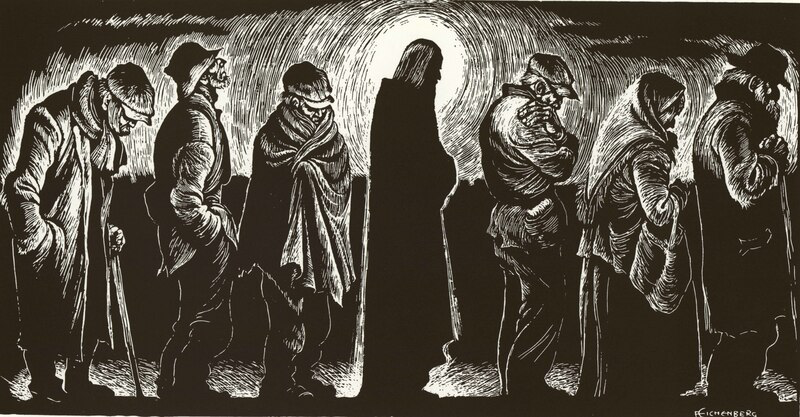 Image source: “Christ of the Breadlines,” wood engraving by Quaker artist Fritz Eichenberg for the Catholic Worker (1950s).